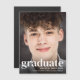 Announce your graduate's achievements with this modern graduation announcement keepsake magnet. The front is filled with his or her favourite photo. "graduate" is written on top of the photograph in bold white typography. Customise with his or her name, school and class year.