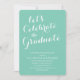 modern photo/picture/image graduation party, script font/hand drawn/written/lettering/lettered style/look/looking, turquoise blue and white, customise colour, high school graduation/grad/graduate/senior/student, modern/stylish/clean/simple/feminine/fresh/hip/elegant/fun/trendy design, let's celebrate the graduate, aqua background, white text, large letter, custom/personalised/customisable text/photo template, for girls, rounded corners.