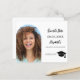 On front: Add your own vertical size photo of the graduate. Photo arch frame. A chic white background, black text. Templates for a name and date. The name and the text: Save the Date are written with a modern hand lettered style script. With a cap, tassel topper.