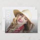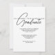 This trendy, elegant graduation party invitation features an elegant photo of the graduate, with trendy modern white script along with the grad's name, school, and graduating class year. The back of the invitation contains all party information and location. Replace the sample photo with your own grad photo.