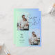 Create a stunning save the date wedding invitation with this modern photo template. The design features a beautiful beige and green blue gradient background that adds a touch of elegance and sophistication. You can easily customise the text, fonts, and colours to suit your style and theme. Add your own photo to make it more personal and emotional. This is a perfect way to announce your engagement and invite your guests to celebrate your special day with you.