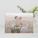 A great and thoughtful way to thank your family, friends, and coworkers who showed up on your wedding day to support and celebrate your special day, with this modern minimalist photo thank you card, featuring script hand lettered "thank you" and a love heart. Easily change the custom message on the reverse side, the replace the photos on both front and back with your favourite wedding photos by clicking the "Personalise" button