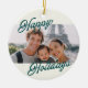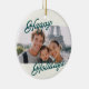 Bring festive joy to your tree with this modern photo ornament, featuring a Happy Holidays message in flowing teal script and a favorite family snapshot. Perfect for gifting to friends, commemorating a special moment, or adding a chic, personalized touch to your holiday décor. Durable, glossy finish and elegant style make this ornament a standout on any Christmas tree.