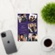 let all your friends and family know that your child had graduated fro high school , this beautiful graduation announcement features five photos where you can add your childs photo frames in real foil overlay whe=ich comes in three colours gold silver or rose gold , all on na purple background.