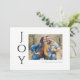 Say it simply with these 7” x 5" holiday photo greeting cards that feature the greeting, "Joy," in black letters on a white blue background. Simply add your favourite photo, name(s) and year.