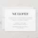 Modern Photo 'Just Married' Wedding After Party Invitation. Customise with one of your favourite wedding photos, bride and groom names, and your wedding date on the front, and add your wedding reception info, and elopement message for friends and family to the back of the card.