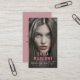 A modern edgy makeup artist photo business card featuring an artistic photo with smoky dusty rose type that complements the models lips, with a trendy modern script title. Smoky dusty rose hue on the back of the card with social media icons.Replace this sample photo with your own vertical stylish photo in colour or black and white, for a dramatic flair. Perfect to customise for makeup artist OR hair stylist.