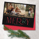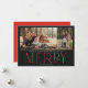 These simple holiday photo greeting cards feature the greeting, "Wishing you a Merry Christmas and a Happy New Year," along with the greeting, “Merry,” in large red and green letters on a black background with placeholders to add two of your favourite photos, family name & the year.