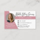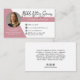 Modern, trendy Notary photo business card features single photo, contact details on a rose gold and white background. Personalise further with your services and social media on the back.