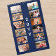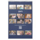 Add your favorite photos to create your own modern 2026 calendar. The 12 images you upload for the months will automatically appear in grids on navy blue on the front and back covers. Add the year in the sidebar and it will appear on the cover and back in a bold modern font. You can also customize the language, which holidays appear, and calendar format in the sidebar. Makes a great gift!