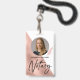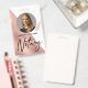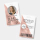 Modern, trendy Notary photo badge features single photo, contact details on a rose gold and blush pink background. Personalise further with your details and logo.