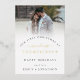 Modern Photo Overlay First Married Christmas. A touch of real foil for your festive wishes with your title and name in either gold, silver or rose gold for this minimalist design. Easily personalise the text and replace the sample image with your own..