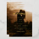 Modern stylish elegant photo wedding invitation with gold dust on with a gold ink pour effect (the gold is a digital effect, not real foil) and modern calligraphy. Classy and elegant, simple and modern invitation.