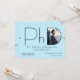 A modern photo PhD graduation party invitation with a light blue and black scheme. Celebrate your being PhDone with this stylish invitation. Simply add your photo & information, add this invitation to your cart, and celebrate this major accomplishment.
