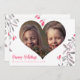 Simple minimalist elegant trendy handwritten script Happy Holidays custom photo winter holidays Christmas card with delicate pink holly berry branches. Easy to personalise with your photo (heart shape), text, and signature.