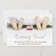 Cute modern photo pregnancy announcement with parents and baby feet under bed covers. You may use this photo or add your own. Simple photo and pale green script type with pale green background on the reverse side of the card. You may click on "customise further " to change font, colour or type size with our design tool.