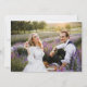 The left-hand edge of this elegant modern wedding invitation features a purple watercolor agate border trimmed with faux gold glitter. The customisable text combines gold-coloured handwriting, copperplate and italic fonts on a rich plum background. Easily replace the sample image on the back with your own horizontal photo.