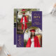 Modern Photo Purple Gold Graduation Announcement features three of your favourite photos of your graduate, with the grad's class year, graduates name and school, university or college, degree, qualification or future plans with the swirly modern gold calligraphy script overlay "Graduate". On the reverse add your custom message. Simple, stylish and classy. Created by ©2025 Evco Studio www.zazzle.com/store/evcostudio