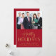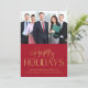 Elegant modern red corporate business holiday card to show your customers appreciation this Christmas season featuring a photo of your company team and "Happy Holidays" in gold faux foil script and unique typography. Personalise your signature line and company name. On the back, input your website address to create a scannable QR code.