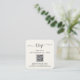 Chic light cream wedding RSVP square enclosure card with "rsvp" in an elegant modern script with swashes. Input your wedding website address to create a QR code that guests can scan to RSVP online. The back features your photo overlayed with your first names and wedding date joined together by a heart.
