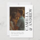 A modern photo wedding invitation with large typography and details on the front. The back has a QR code with additional details for guests making this a budget friendly all in one option.