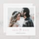 This simply chic square photo wedding save the date card template features an elegant, minimalist, modern design. Please browse our shop for versions of this design in a rectangular format in flat card, postcard and magnet formats in various colours! The front features your first names under your favourite photo and a 'save the date' message conveyed with a striking blend of two distinct fonts, with 'the' in a light, flowing script between the rest of the message, which is in upper case with a bold, crisp formal look. This design element is included on both sides and can't be altered, though you might choose to delete it on the back for an even simpler look. The 'Save the Date' text on the front is an elegant shade of rose gold, and it's in black on the back. And on the back you can of course in addition to replacing our sample info with your own, delete text fields that you don't need, or change the wording, as well as change font, size and colour. The default colour for your names text on the front is black, and the text on the back is a mix of black and slightly softened black. The default background colour on both sides is set as transparent, to let the paper colour simply serve as the base tone. But you can edit this and change the look of one or both sides in this regard as well to suit your style. Customise this elegant minimalist wedding save the date flat card template with zazzle's intuitive editing tools, your favourite photo and your inspiration and make it uniquely yours!