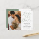 Modern save the date announcement is prefect to get your wedding plans in motion. It features a photo template and large 'save the date' typography in sage green on a white background. Customise with your own detials.