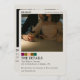 Announce your special day with this stylish Modern Save the Date card featuring a full photo front and a clean, structured details layout on the back. With room for your wedding date, venue, reception info, and website, this design offers both beauty and function. Classic serif type, a tasteful colour palette bar, and your custom photo make this card a timeless yet modern way to begin your wedding stationery suite.
