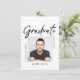 Celebrate his milestone with timeless style using this Modern Photo White Graduation Party Invitation with Black Typography. Designed with a crisp white background and clean black lettering, this invitation offers a sophisticated, minimalist look that keeps the focus on your graduate.