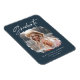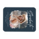 Modern photo typography graduation announcement magnet. Featuring stunning script text and textured effect photograph. Navy blue colour can be customised.