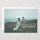 Modern Photo Script 'Just Married' Wedding Announcement. Announce your elopement to family and friends with this elegant, customisable wedding card. Designed with beautiful script lettering on the front and back, personalise with your names, a favourite wedding photo, and a message to all your loved ones on the back.