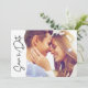 Our Modern Photo Script Wedding Save The Date is an elegant and stylish way to announce your special day to friends and family. With its sleek design and customisable features, this card perfectly blends contemporary flair with timeless romance. The front of the card showcases your chosen photo, beautifully framed by modern script typography. Whether it's a candid shot filled with laughter or a tender moment captured between you and your partner, your photo will serve as a heartfelt expression of your love and joy. On the back, there's plenty of space to include all the important details of your wedding day,
