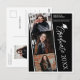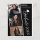 The Modern Photo Strips Black Graduation Announcement Postcard is a modern mix elegant design. With a black colour scheme, it features photo collage film strips, a graduation hat, and stylish calligraphy. The card captures the essence of graduation, symbolising success and celebration. The film strips evoke nostalgia, showcasing essence of the graduate's joy. The graduation hat adds tradition, while the calligraphy adds a personal touch. This visually striking card appeals to graduates and their families, serving as a cherished keepsake. Its modern design and thematic elements make it a fitting tribute to the graduate's accomplishments.