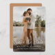 Announce the exciting details of your wedding day with our elegant Save the Date Invitations. Our modern design showcases a stunning vertical photo that extends to the edges, The white text overlay adds a touch of sophistication, beautifully complementing the image of the happy couple.Choose from a variety of paper shapes and sizes to tailor the invitation to your preferences. The versatile design tool allows you to further personalise this photo save the date template, enabling you to make additional modifications that suit your style and preferences, The coloured back in a warm brown hue adds a refined touch, elevating the overall look and feel of the invitation.