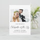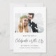 Modern elopement or private wedding announcement and future wedding reception save the date featuring your photo in a "Mr & Mrs" frame, "Celebrate With Us" in a chic script and your names, reception date and location in simple typography. On the back, personalise your announcement and add your married names in a signature-like script.