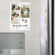 Introducing the Modern Photo Wedding Thank You Magnet, a stylish and thoughtful way to express your gratitude to guests after your wedding. This magnet features a three-photo template, allowing you to showcase your favourite wedding day memories in a sleek and modern layout. The magnet also includes a customisable monogram and elegant "Thank You" typography, making it a chic keepsake that friends and family will love to display. Perfect as wedding thank you magnets, this design allows you to easily personalise it with your unique photos, making it a heartfelt memento of your special day.
