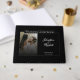 Capture the love and memories of your special day with this Modern Photo with Black Overlay Wedding Guestbook, featuring a stunning bride and groom photo softened by a clean black overlay. Designed with a simple layout, graceful, elegant script, and modern typography—including a stylish elegant ampersand—this guestbook complements any minimalist theme with ease. A timeless wedding keepsake, it invites your wedding guests to share warm wishes, advice, and memories, making it a cherished part of your celebration for years to come.