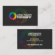 © Socialite Designs. Colourful shutter and watermark photography business card . The colourful design element, including the watermark, can be moved and resized. The background colour is a dark grey. To customise all of the design elements, press the orange button "Customise it".