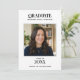 This graduation announcement offers a clean and modern way to share your news, combining a favourite photo with clear, well-spaced text to highlight the graduate, class year, and school details. The simple layout keeps everything easy to read while still feeling special, making it ideal for sending to friends, family, and wider circles who want to celebrate the achievement. It works well for high school or college graduations and suits both formal and more relaxed styles, whether you’re mailing announcements or including them with invitations or thank you notes. The balanced design keeps the focus on the photo while ensuring key information stands out, creating something that feels thoughtful without being overly decorative. A good option if you want an announcement that feels polished and personal while staying simple, clear, and easy to share. The reverse has plenty of room for your own custom text, and a hand written signature if you want to add one.
