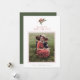 A modern minimalist holiday photo greeting card with plenty of white space, featuring a watercolor pine tree branch with pine cones and red berries. Personalise with your favourite photo and editable headline and sign off. Add an optional message to the reverse in white text on a dark green background.