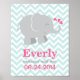 Modern Pink and Aqua Elephant Custom Monogram Poster