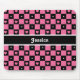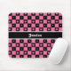 Modern Pink and Black Chequered Hearts With Name Mouse Pad