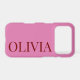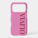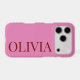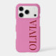 Make a bold statement with this trendy and minimalist iPhone 17 case. Designed with a vibrant pink backdrop and a striking vertical name in a deep red serif font, this case leans into the popular "pink and red" colour-blocking aesthetic.