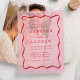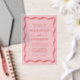 Introducing our Modern Pink and Red Wavy Frame vellum wedding invitation, where boho style and retro charm unite in a perfect celebration of love. The bold red lettering dances across the soft pink sheer vellum background, framed by a vintage-inspired wavy design that brings a nostalgic yet modern elegance to your special day. Personalise this whimsical invitation with your names and wedding details for a unique touch that reflects your love story. Ideal for couples looking for a fun, yet sophisticated design, this vellum wedding invitation sets the perfect tone for a memorable celebration.