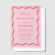 Modern Pink and Red Wavy Frame Wedding Vellum Invitations