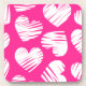 Modern Pink and White Doodled Heart Valentines Day Coaster