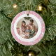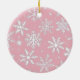 Modern Pink and White Snowflakes Photo Ceramic Ornament