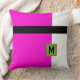 Brighten up your home with this modern minimalist throw pillow that features simple pink and black colour blocking accented with a customisable initial. Perfect for adding a pop of colour to any space, whether indoors in your living room or bedroom, or outdoors on a porch or patio. This cheerful design will create an inviting atmosphere in your home. It also makes a great housewarming gift for new homeowners.
