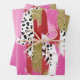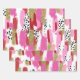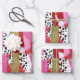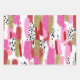 Modern abstract wrapping paper sheets in pink, black, and white with gold accents add a chic, contemporary touch to any gift.