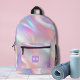 Modern Pink Blue Iridescent Swirl Monogram Printed Backpack